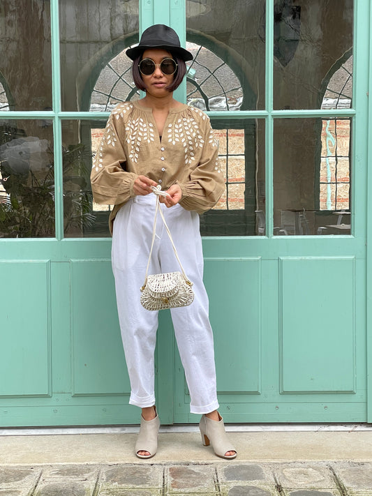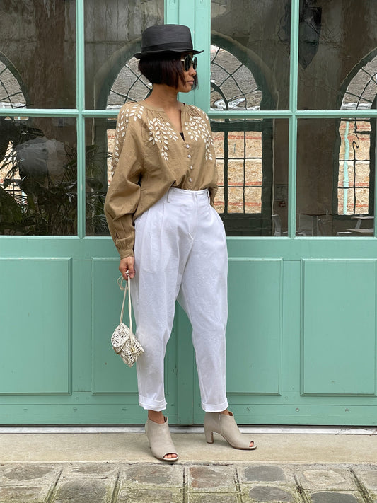 Blouse en coton aspect lin