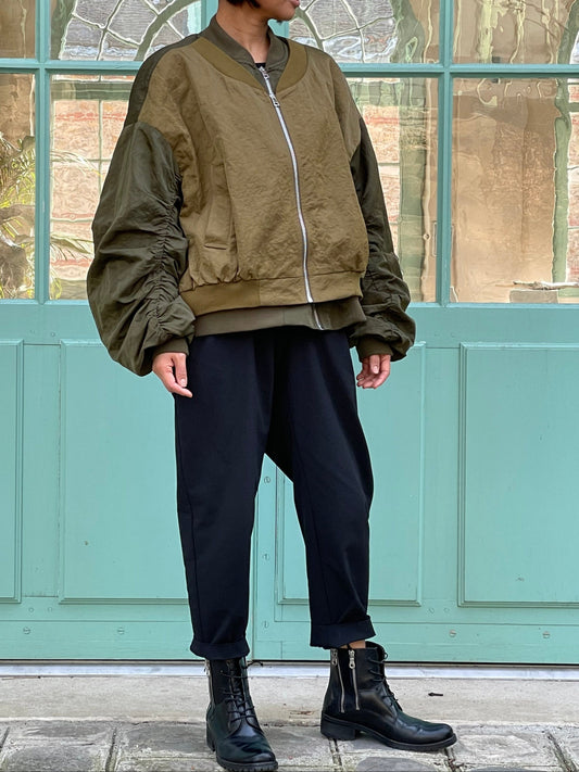Bomber à manches froncées et zip devant
