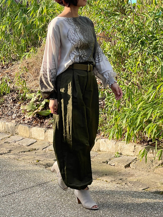 Blouse ample manches évasées-couleur crème