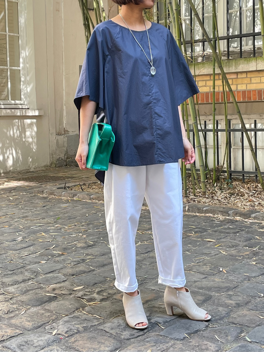 Blouse ample en coton bleu – coupe minimaliste