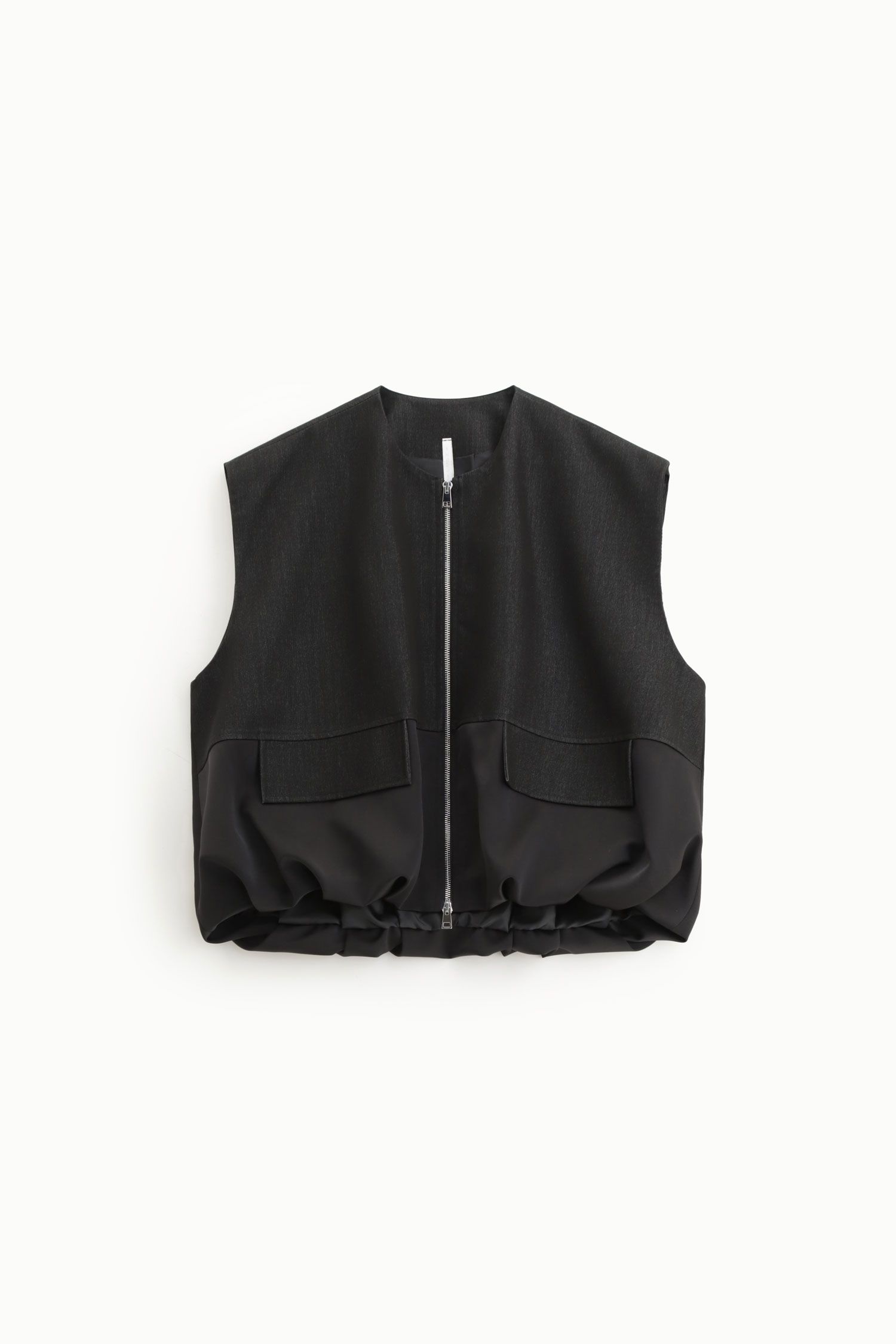 This vest stands out with its understated, modern elegance. Featuring a functional zipper, it has large front pockets that emphasize its practicality. Ideal for combining comfort and style every day, it integrates perfectly into a versatile wardrobe and adds a stylish and confident touch.