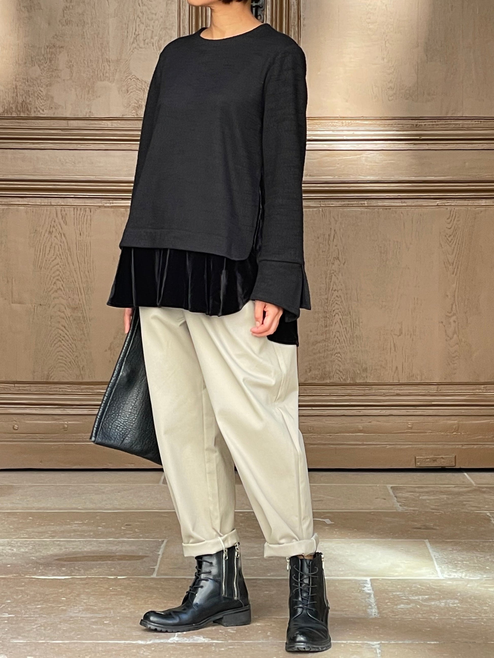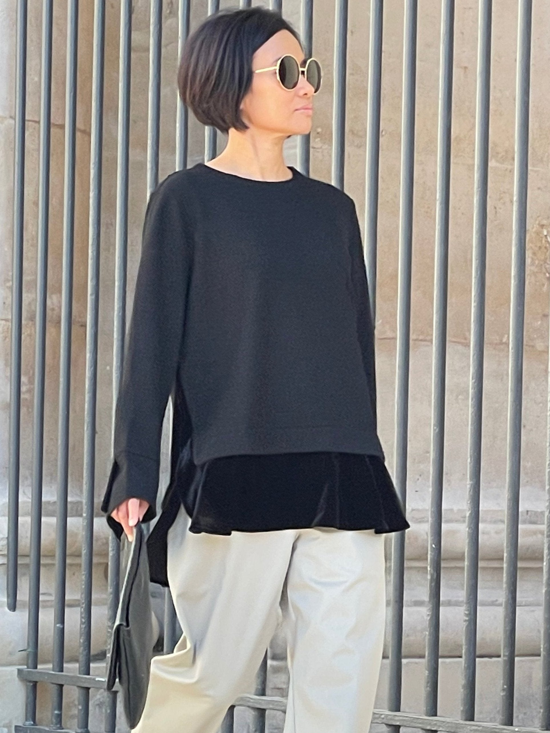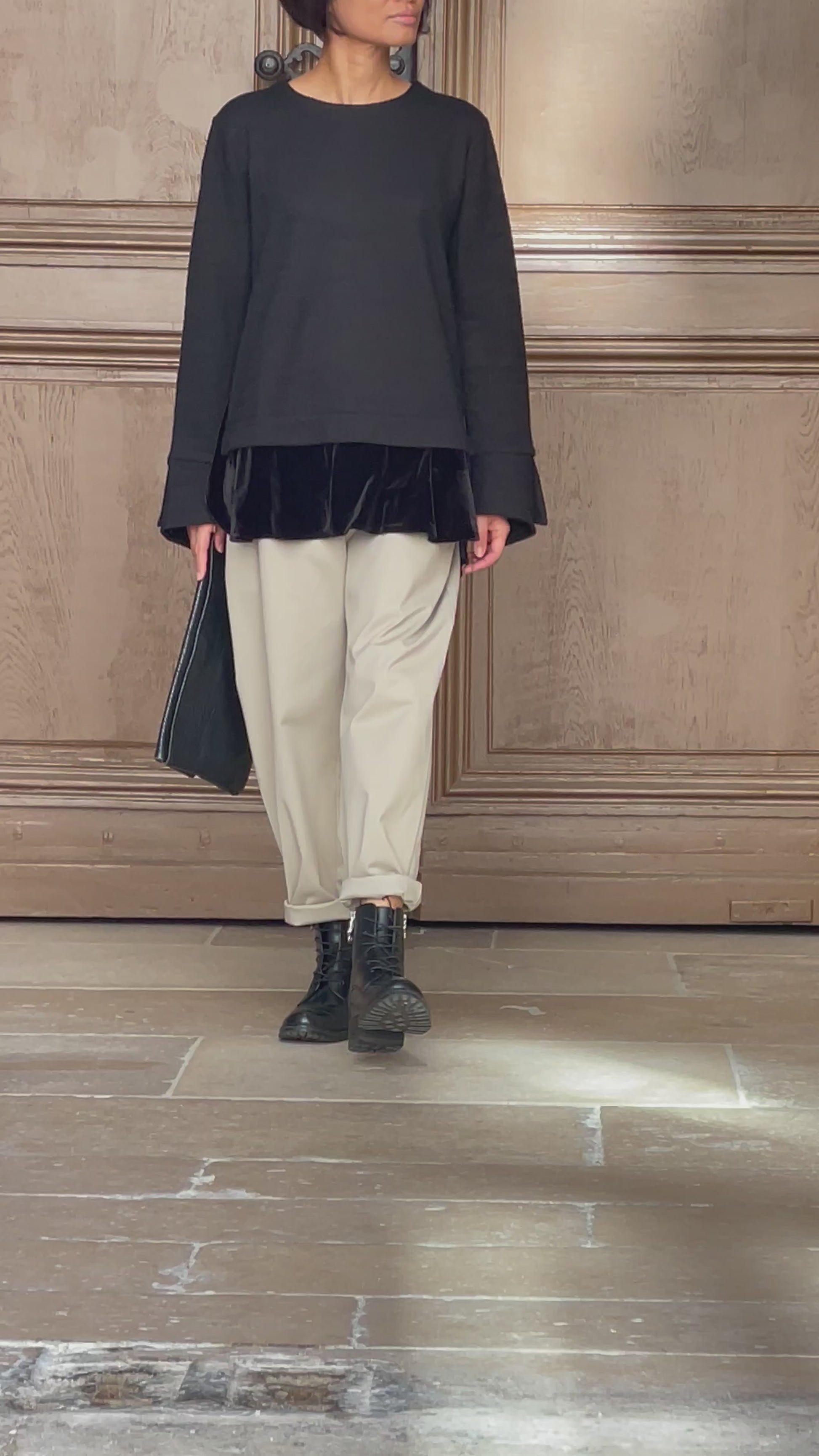 A contemporary and timeless piece that brings out the urban minimalist spirit. Woven velvet on the sleeves.