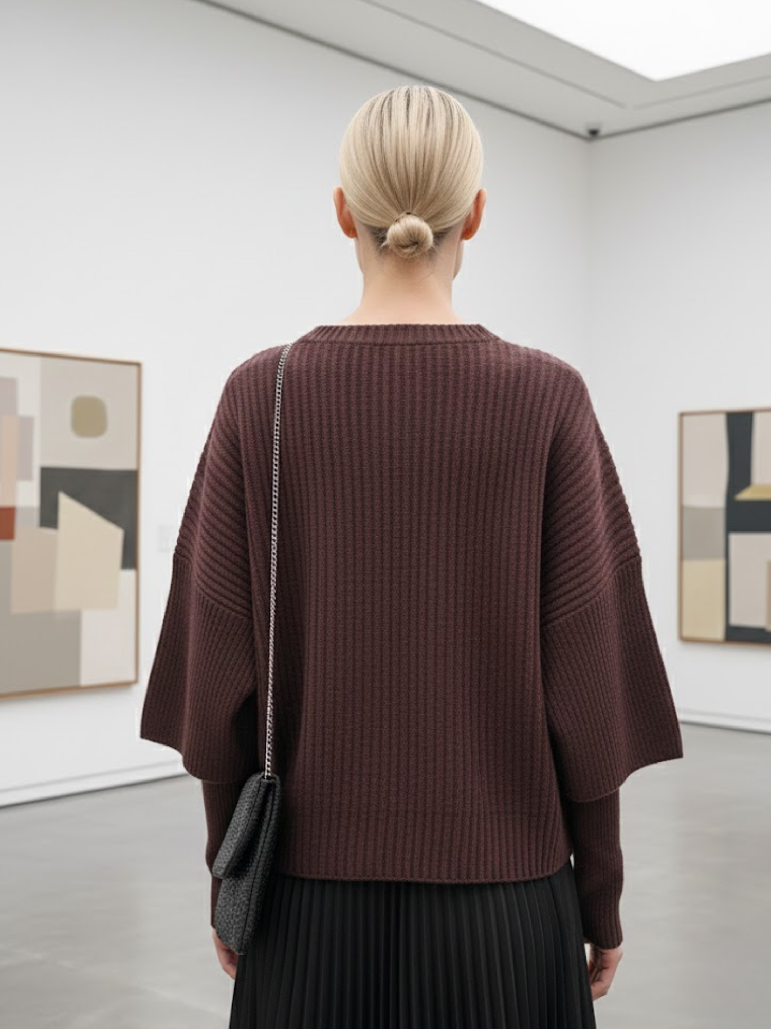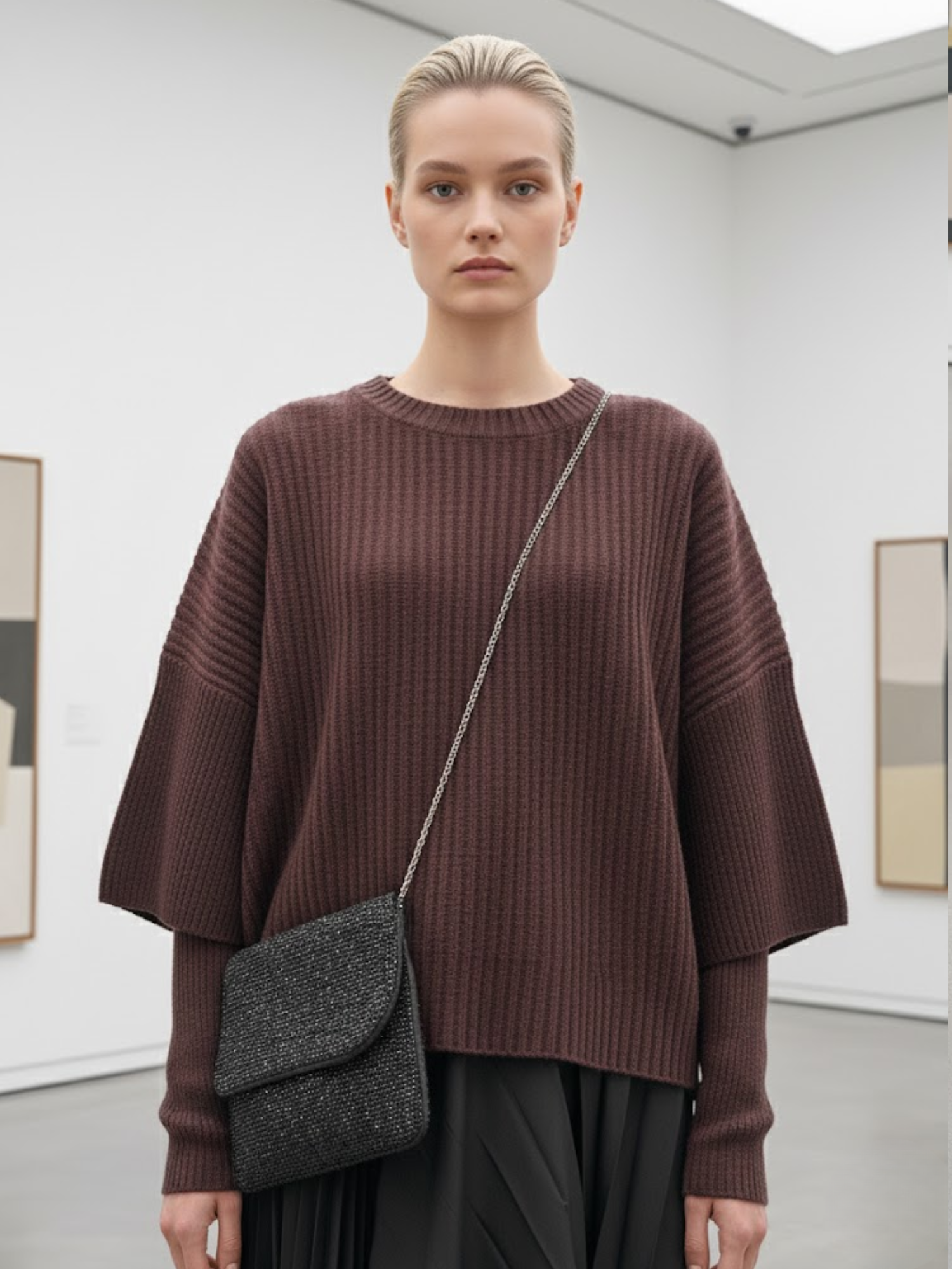 A soft and luxurious bouclé sweater, crafted from an alpaca blend for exceptional comfort. Its boxy fit and dropped shoulders create a relaxed and modern look.