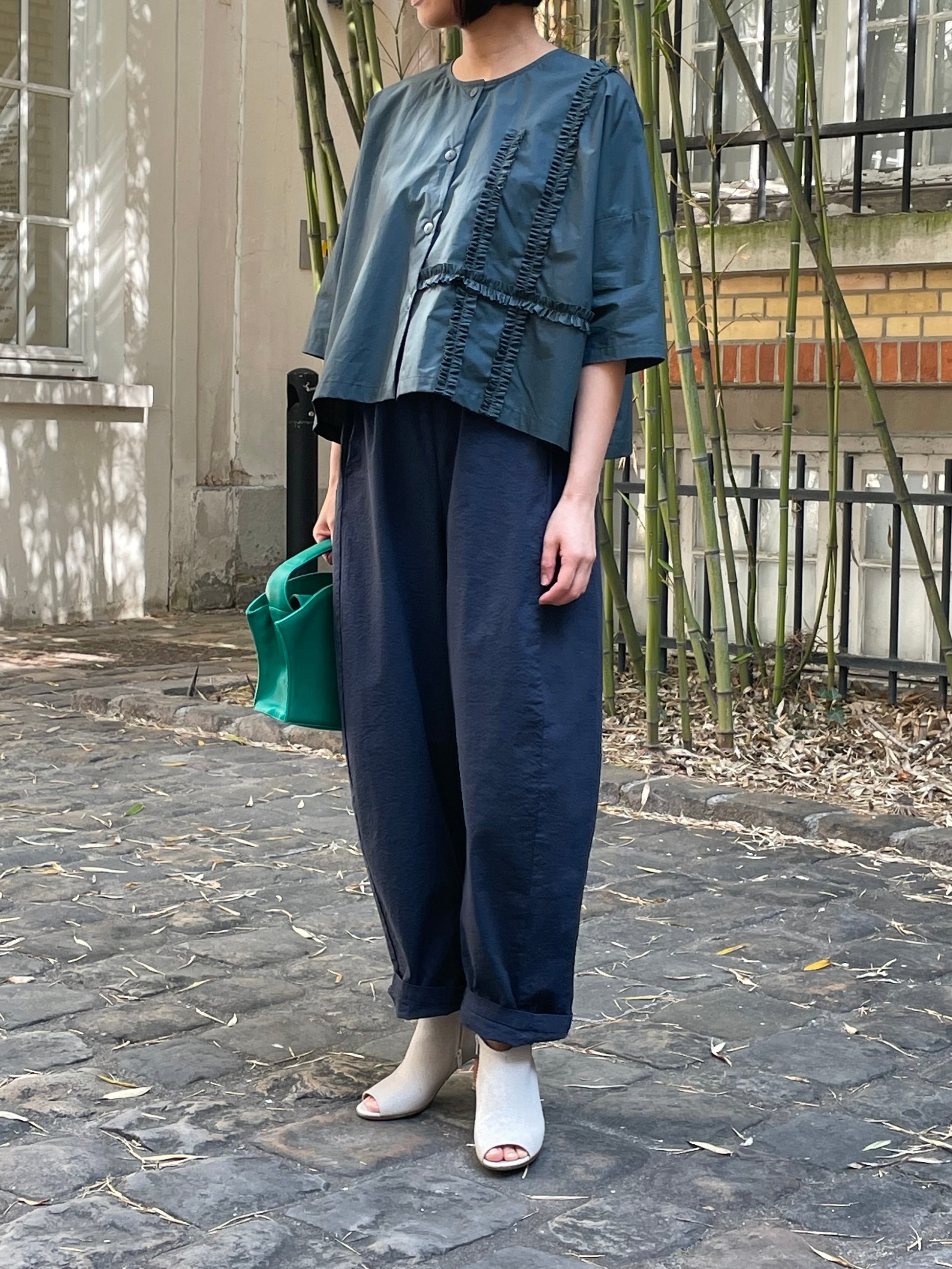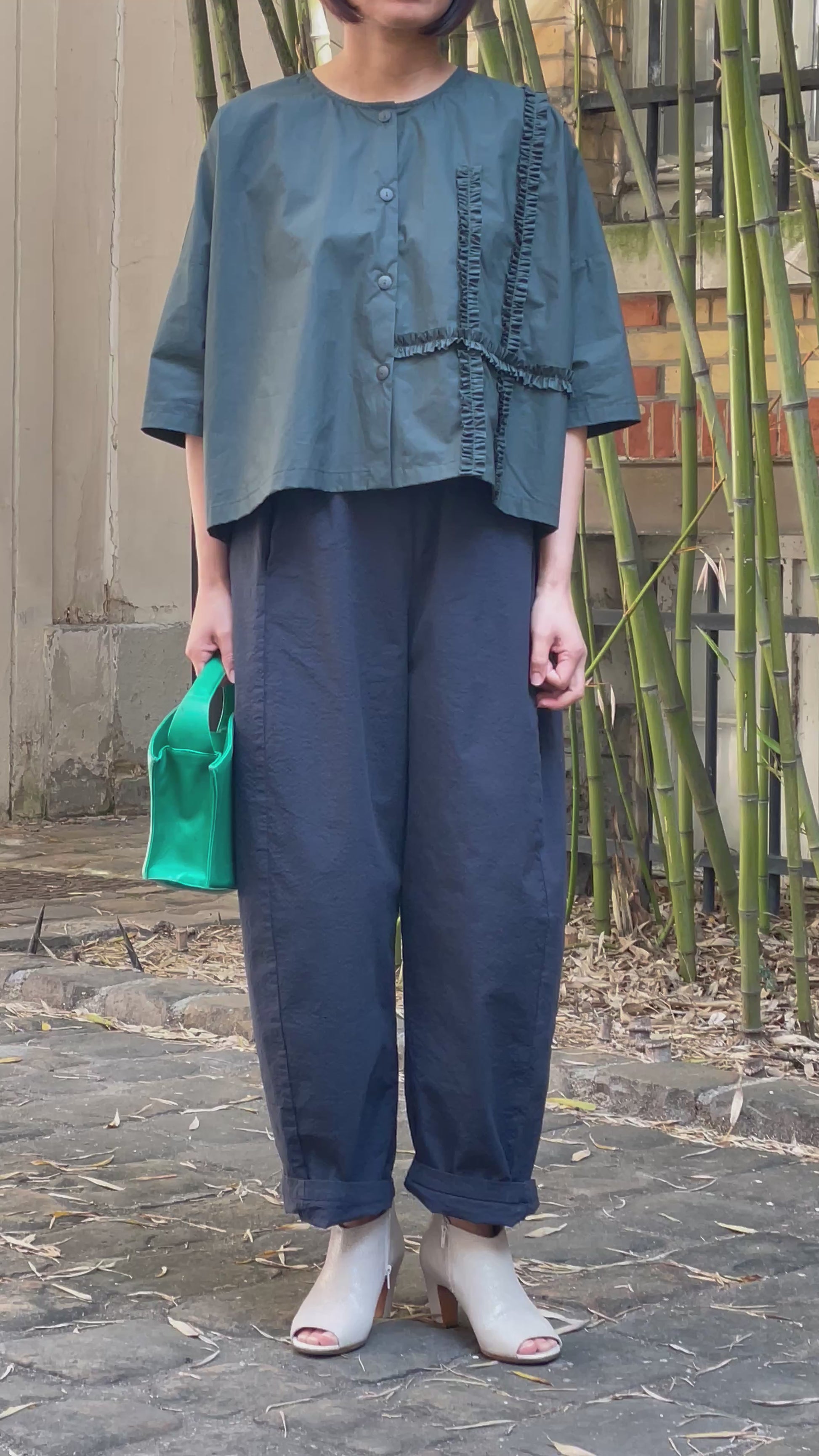 Sa coupe ample et fluide offre une grande liberté de mouvement tout en créant une silhouette moderne et minimaliste. Son coloris vert profond apporte une note chic et intemporelle, facile à associer avec un pantalon habillé ou un jean pour un look casual élégant.