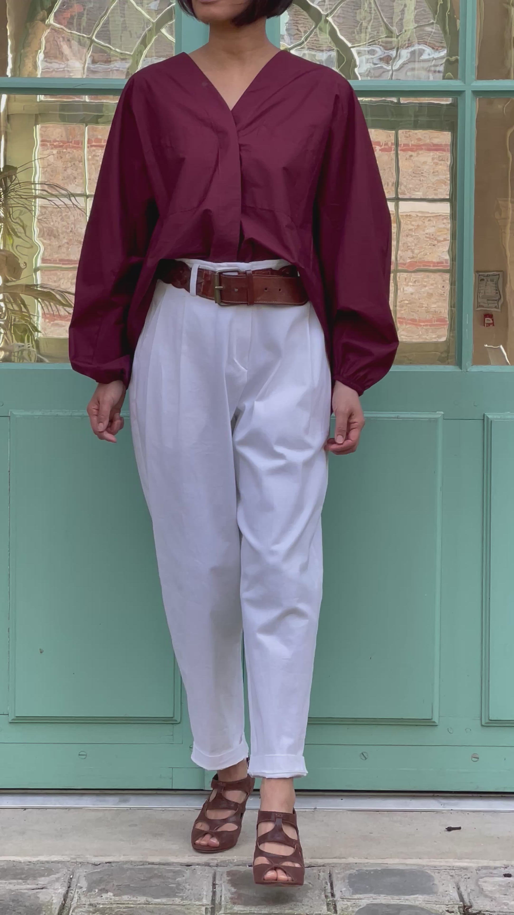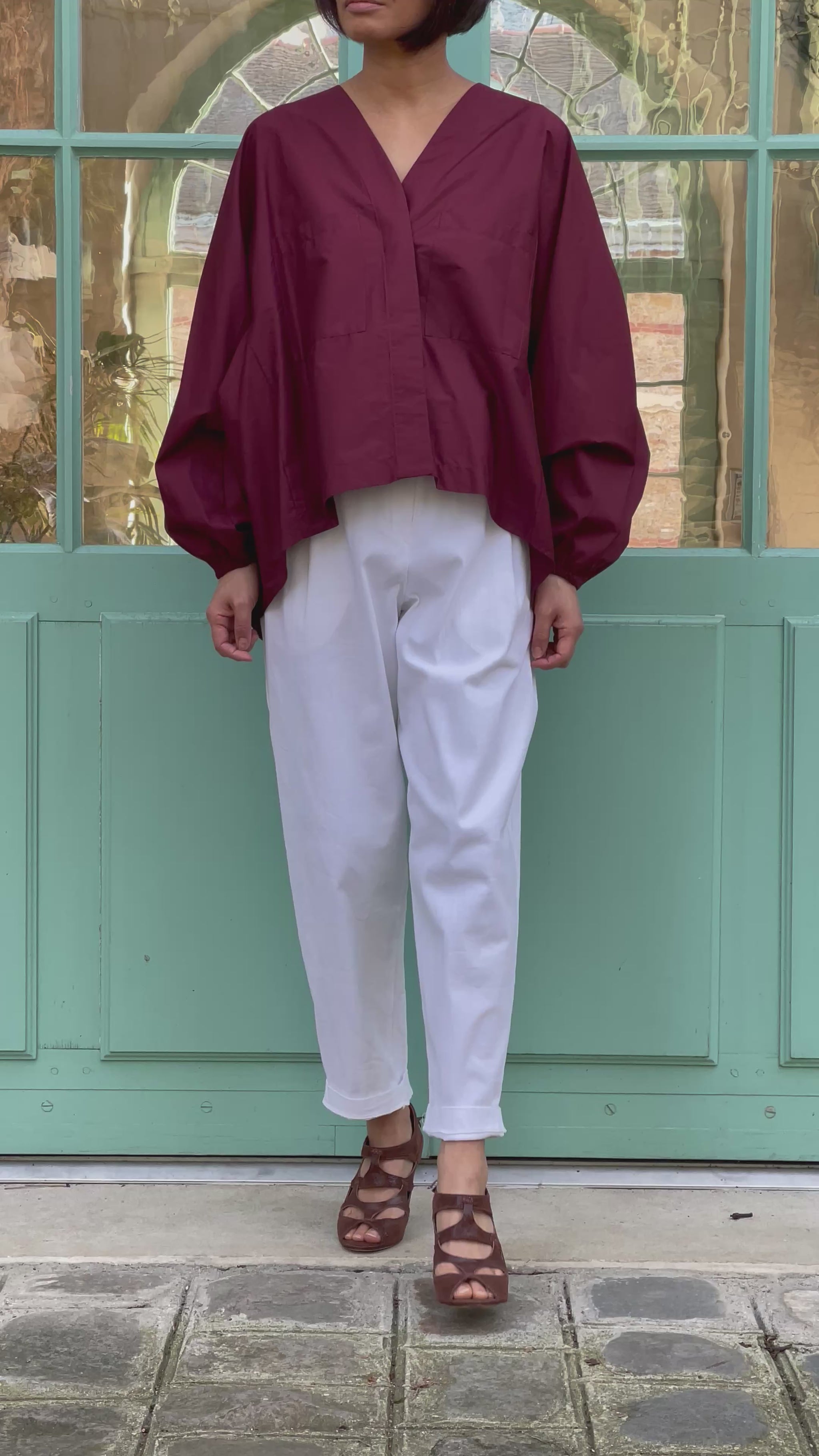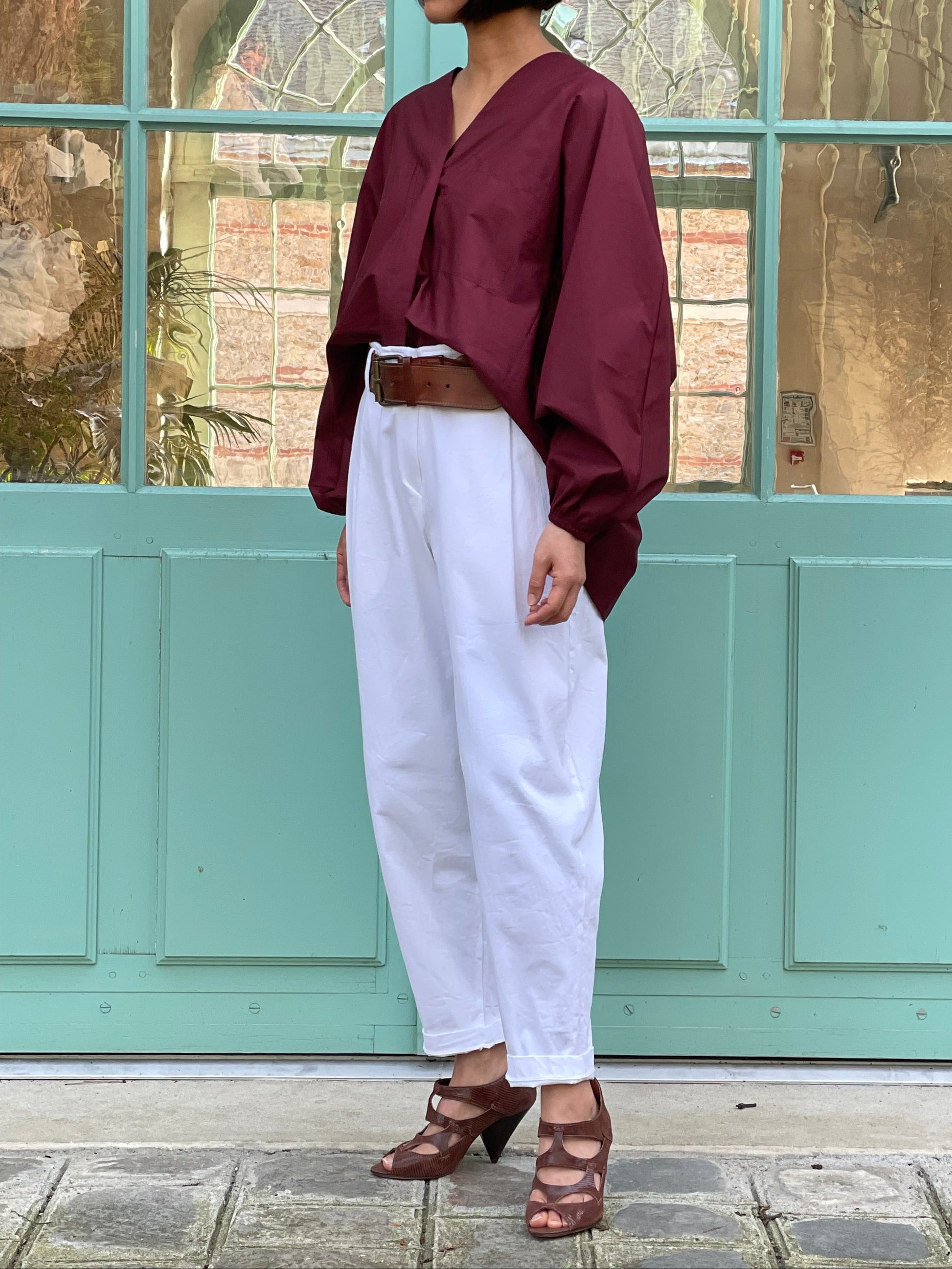 Chemise en coton bordeaux - coupe ample