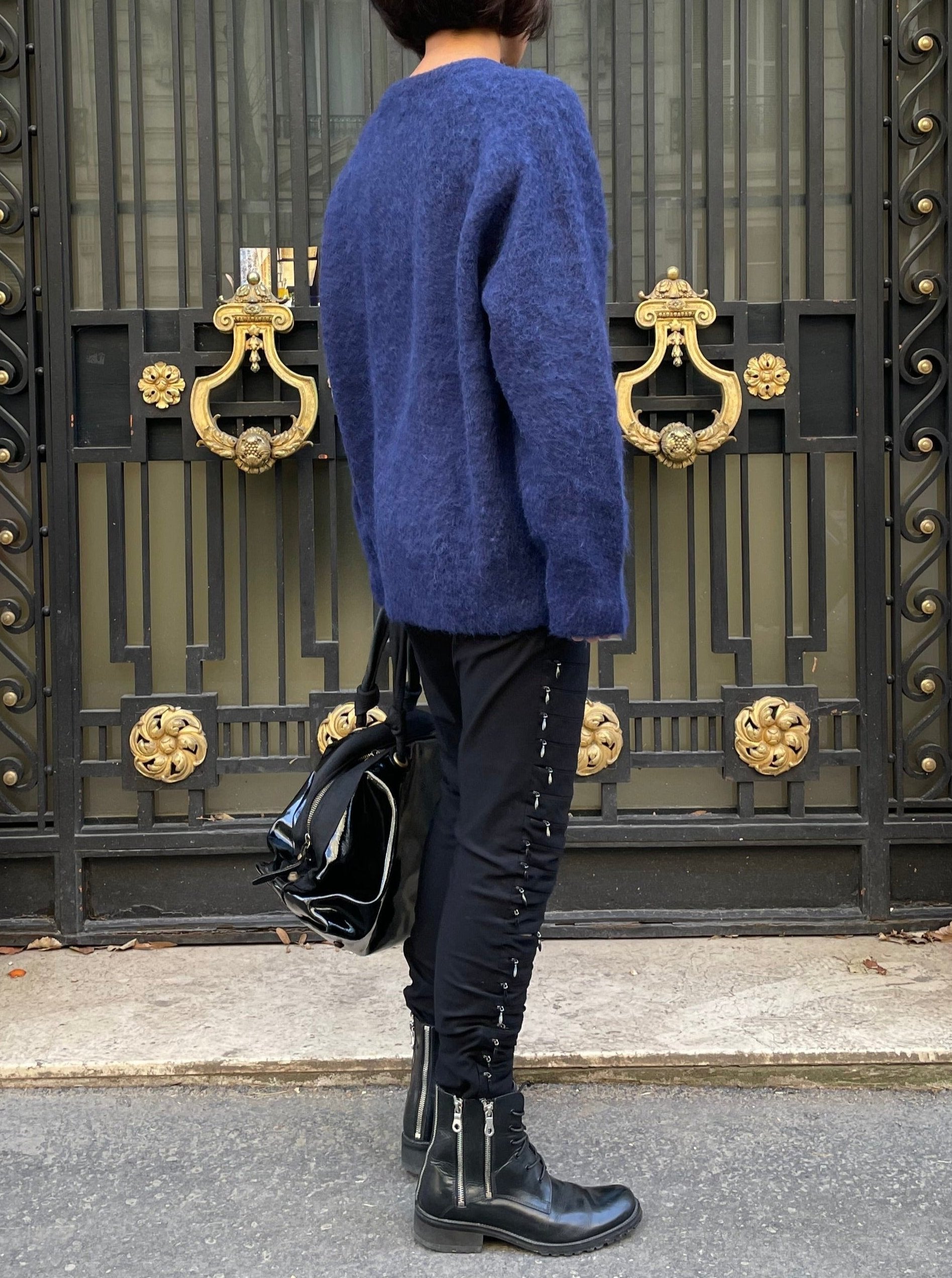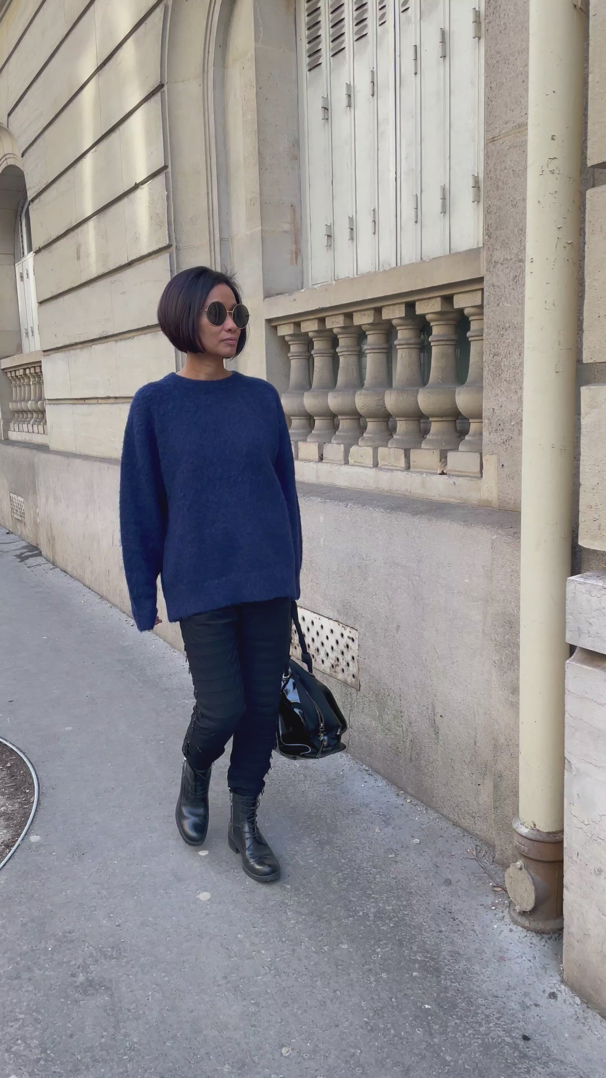 Ce pull bleu foncé en Alpaga et légèrement ample vous offrira une sensation de chaleur pour les hivers rigoureux .
