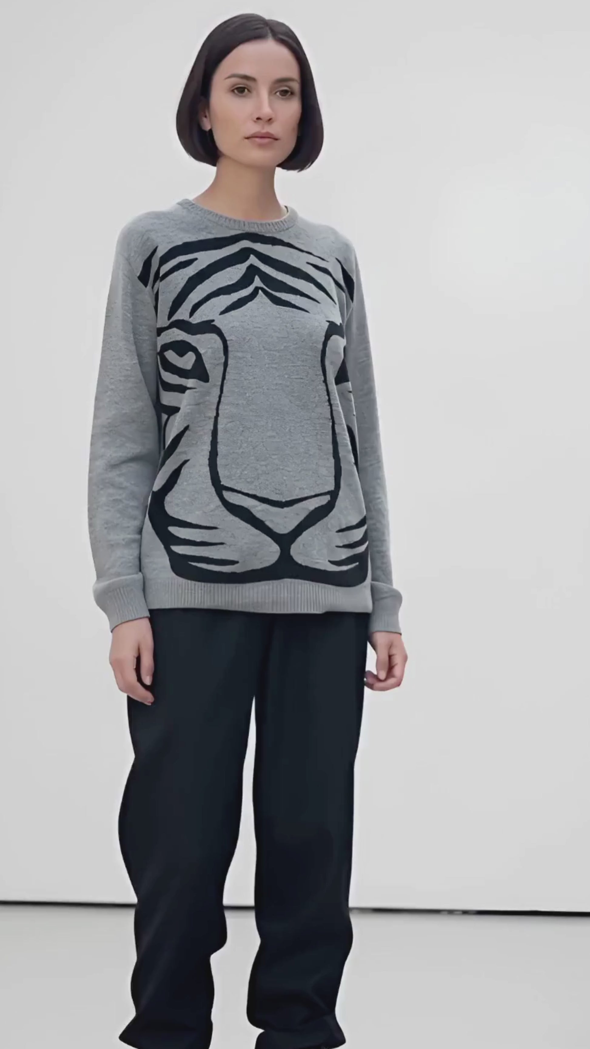 Affirmez votre style avec ce pull col rond au motif tigre audacieux.