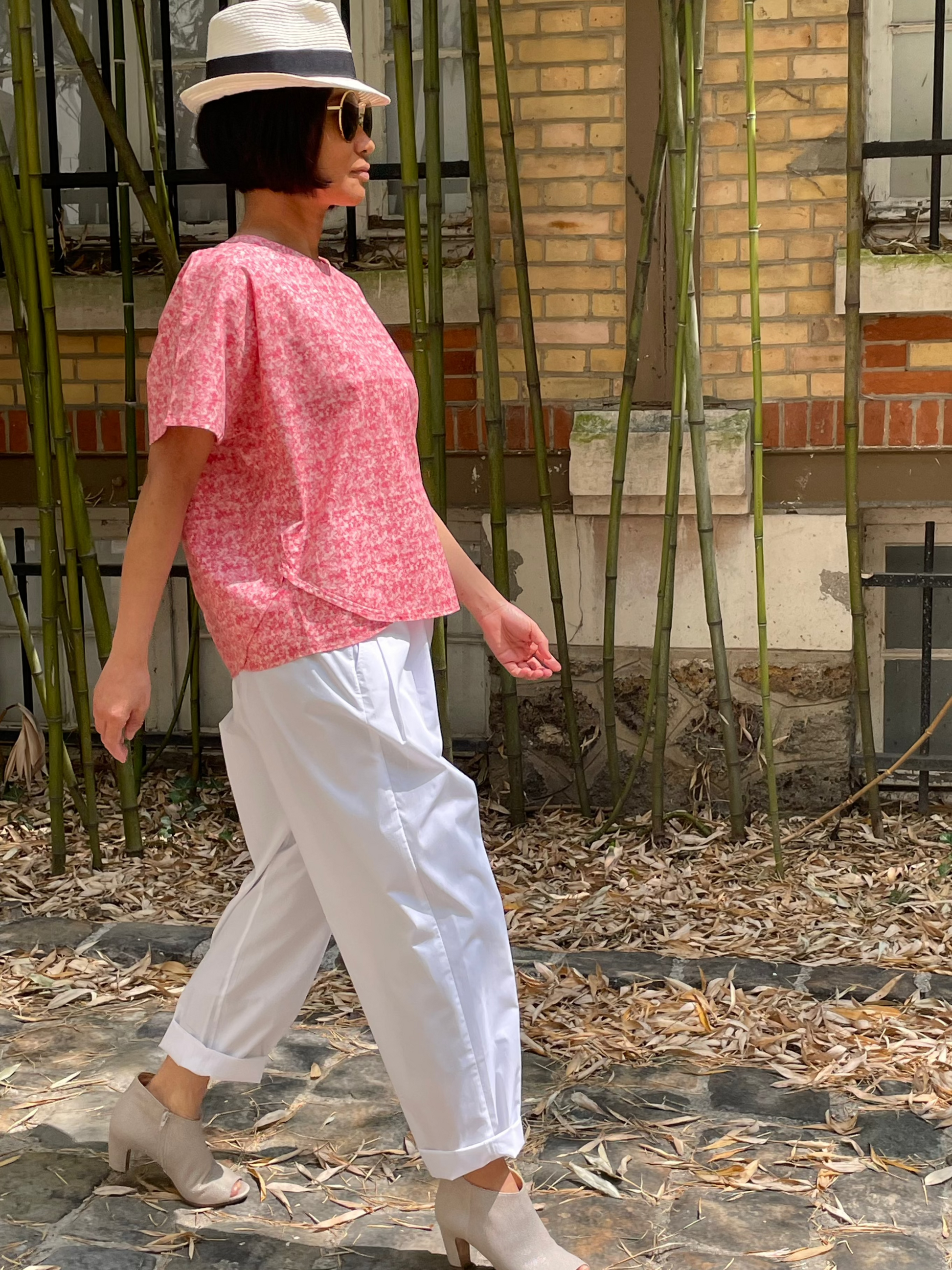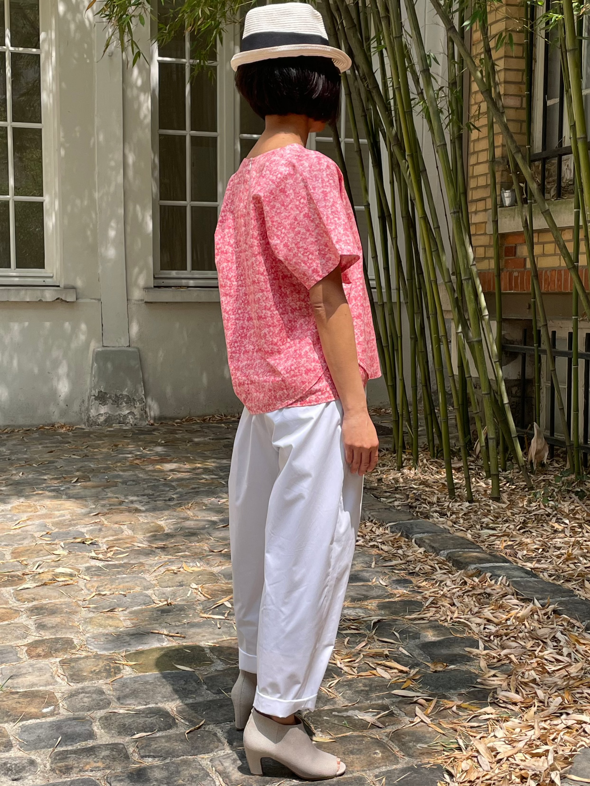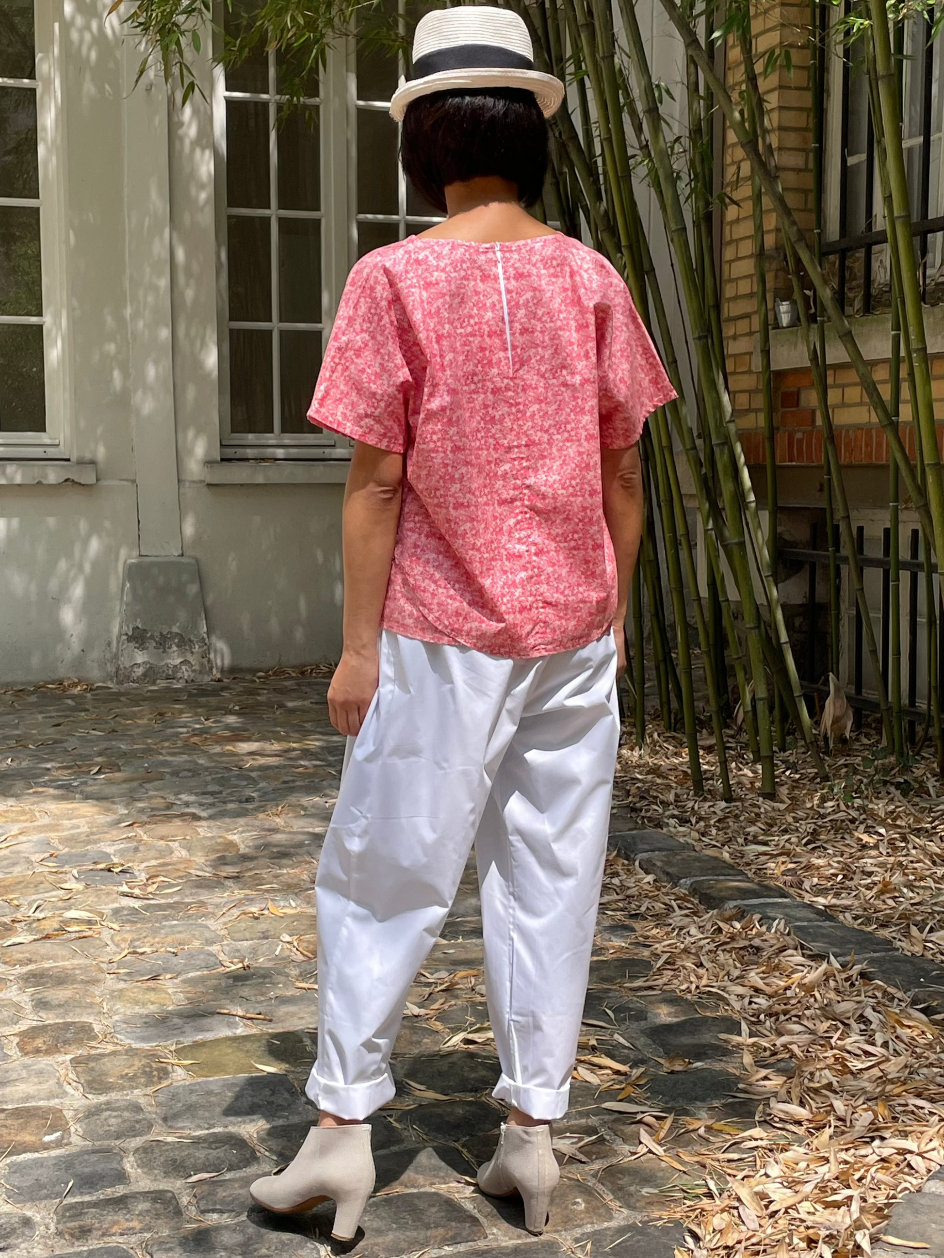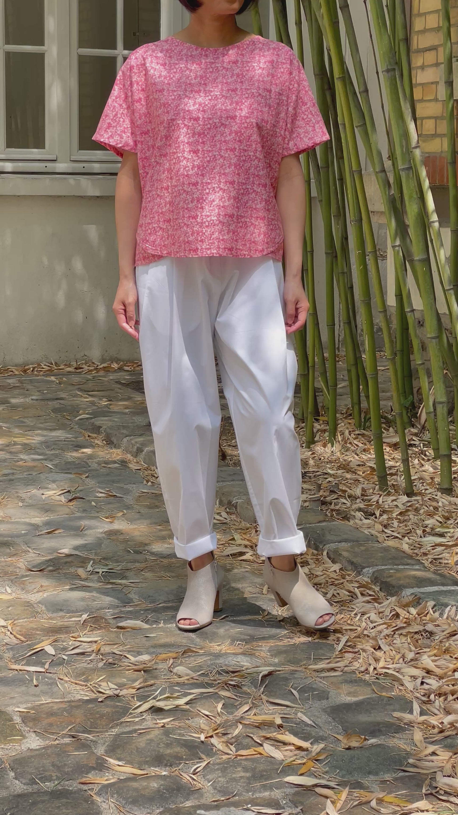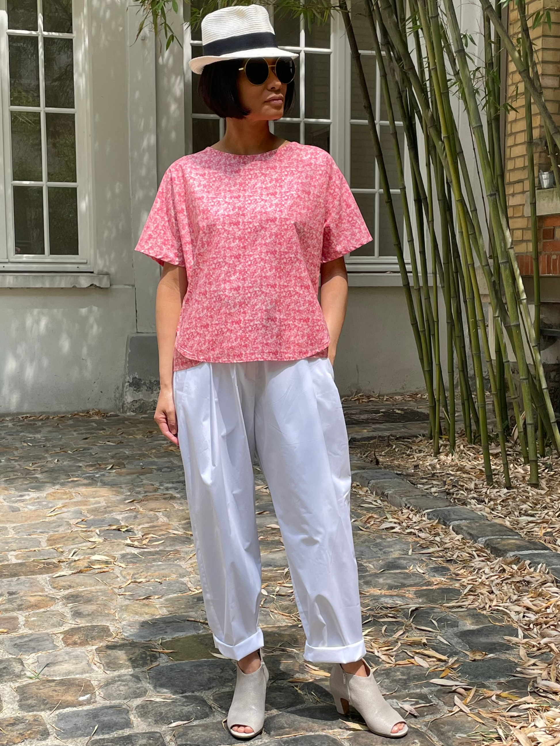 Idéal pour les journées ensoleillées, ce T-shirt se marie parfaitement avec un pantalon blanc ou un jean pour un look casual chic. Ses manches larges et son encolure ronde apportent une note décontractée mais élégante.